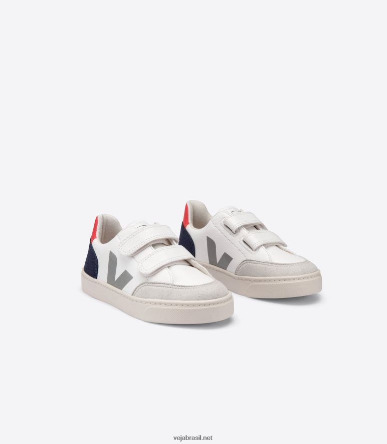 Crianças Veja V-12 Couro Cromado Branco Multico Náutico 6v0x82310