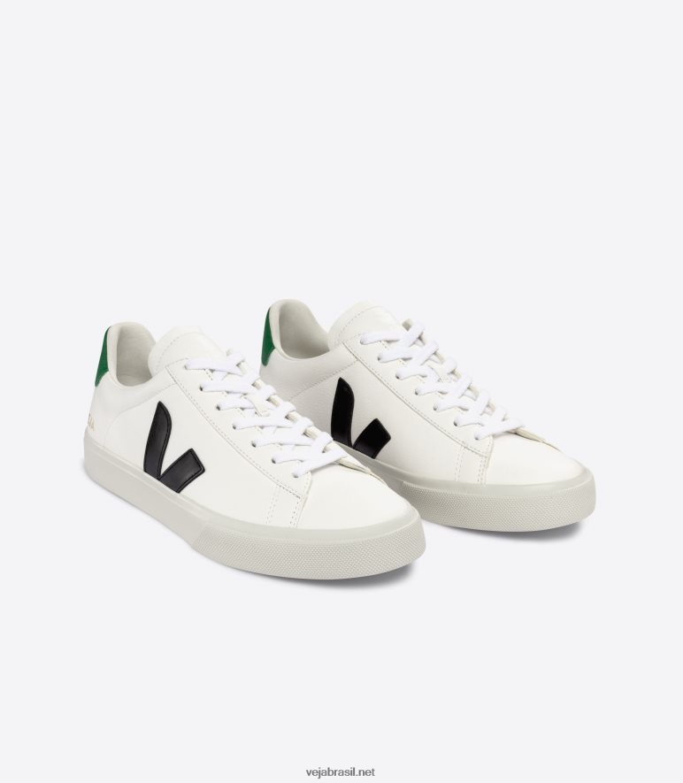 Homens Veja Campo Chromefree Couro Branco Preto Esmeralda 6v0x8220