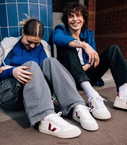 Homens Veja V-10 B-mesh Branco Marsala Natural 6v0x8257